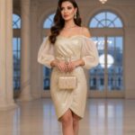 Altın payetli tasarımıyla göz alıcı bir ışıltı sunan bu mini abiye elbise, parti, düğün ve özel davetlerde şıklığı ön plana çıkarır. Omuz açık yaka formu feminen ve zarif bir duruş sağlarken, tül/şifon dokulu uzun kollar tasarıma romantik ve hafif bir hava katar. Vücuda oturan kesimi sayesinde silueti dengeli şekilde sarar, mini boyu ise modern ve iddialı bir görünüm sunar. Payetli yüzeyi ışığı yansıtarak gece davetleri için etkileyici bir stil oluşturur. Astarlı yapısı konforu artırırken, fermuarlı kapama pratik kullanım sağlar. Şık ve gösterişli tasarımı sayesinde minimal aksesuarlarla dahi güçlü bir kombin elde edilebilir.